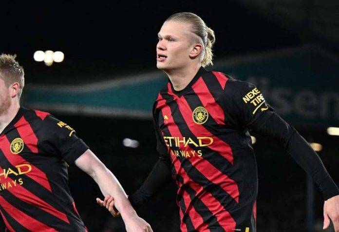 El duelo empezó muy igualado para los dos pero se notaba quien podía anotar el primero en cualquier momento del primer tiempo. Erling Haaland tenía un duelo interesante con el portero Illan Meslier, el guardameta ganó todos los cruces de la primera mitad. En lo último del primer tiempo una jugada de De Bruyne por la izquierda termina en un disparo de Mahrez, el portero la ataja y Rodri pone el primero de la visita.