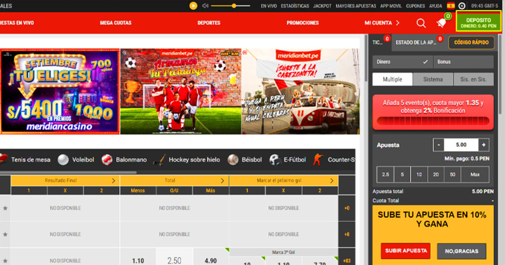 En los meses de agosto y septiembre, Meridianbet lanzó increíbles promociones como: Torneo VIP, Abono blanquirrojo, S/. 1000 sin rollover con tu primer depósito, 50,000 en premios, 10% Cashback.