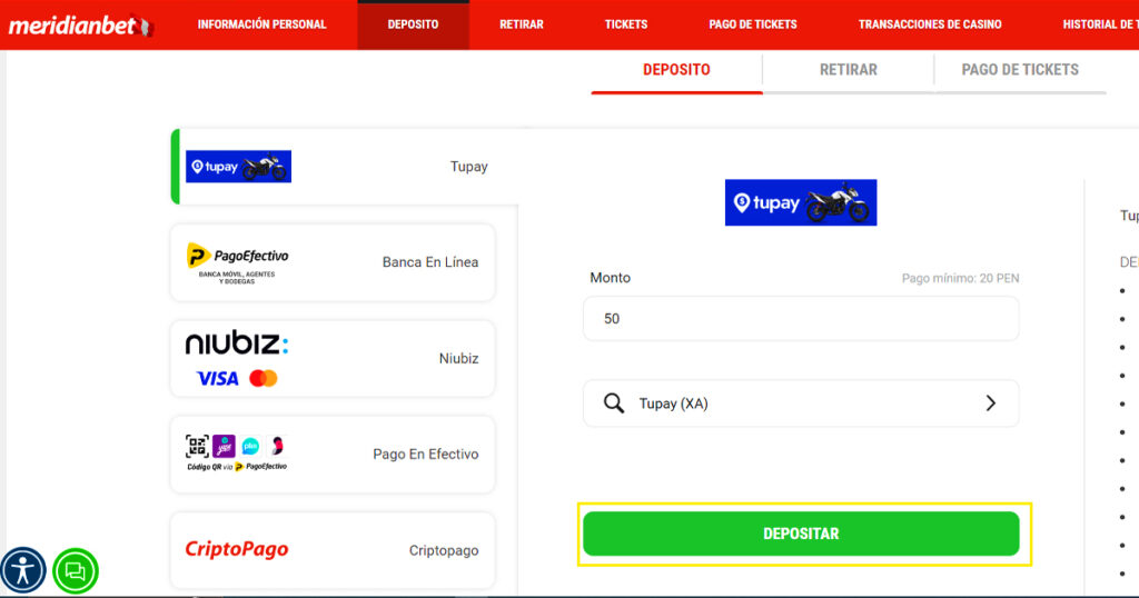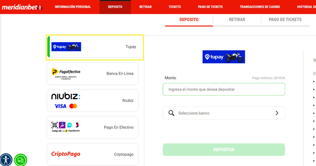 Sigue los pasos para recargar en Meridianbet a través de Tupay: